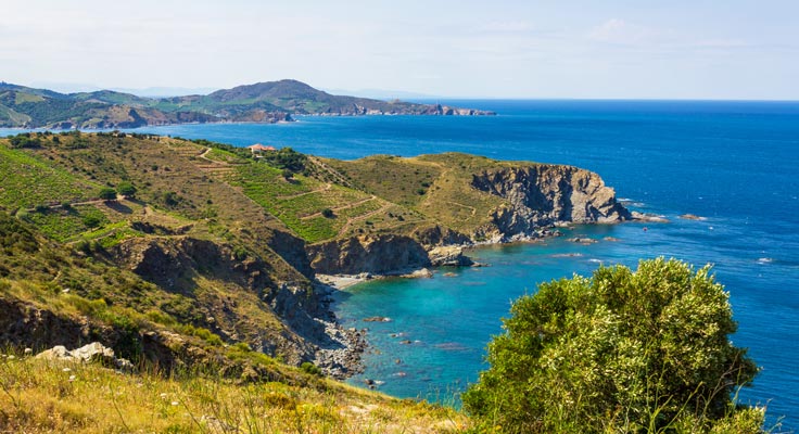La côte Vermeille au sud des Pyrénées-Orientales offre quant à elle un littoral plus accidenté et rocheux. Les villages de Collioure, Banyuls-sur-mer, Port-Vendres et Cerbère font la joie des vacanciers avec leurs ruelles colorées et leurs criques confidentielles : l’anse de la Balette à Collioure, la plage du Sana à Banyuls-sur-Mer, l’anse Sainte-Catherine à Port-Vendres… L’anse de Paulilles, site classé de la côte Vermeille, offre de divines plages au pied des vignes en terrasse et du massif des Albères.